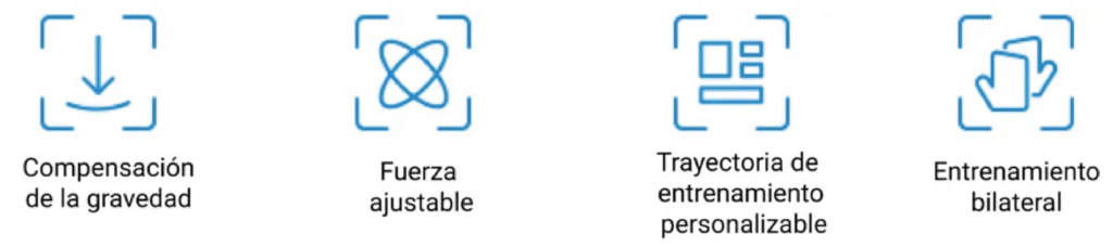 Gracias al uso de un innovador mecanismo accionado por cable y una estructura paralela de varillas ligeras de fibra de carbono, reduce la fricción y la inercia, lo que mejora la compatibilidad en la interacción entre el ser humano y la máquina.