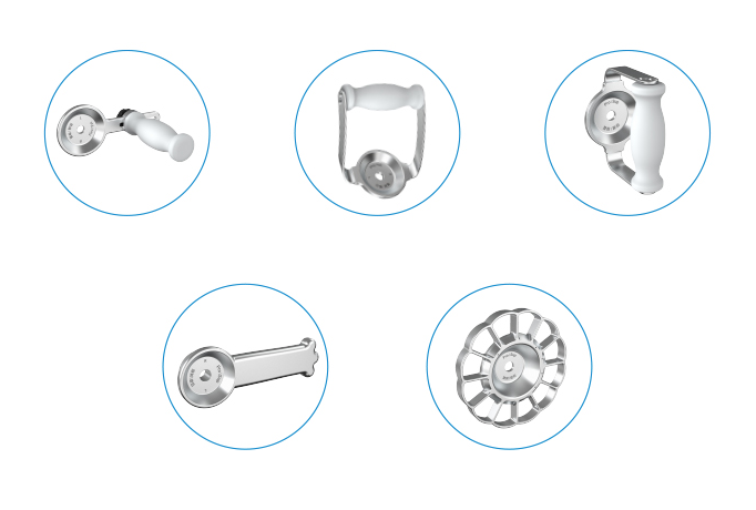 Las asas del WristMotus™ se pueden intercambiar para adaptarse a los movimientos de la muñeca del paciente, lo que ofrece una amplia gama de opciones para satisfacer diversas necesidades de rehabilitación.